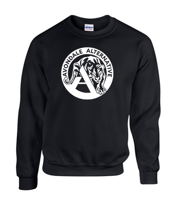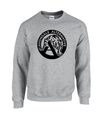 Adult Crewneck sweatshirt 50% Cotton /50% polyester 13.5 oz. Full Front centre screen printed school logo