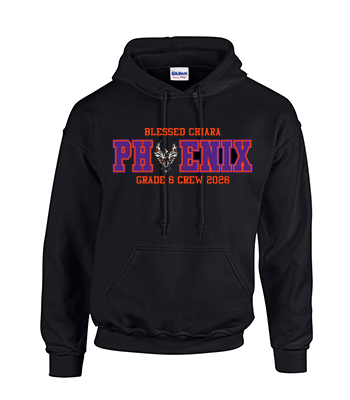 Varsity Hooded Sweatshirt 50% Cotton /50% polyester preshrunk 13.5 oz. Double-lined hood. Drawstring at neckline (no drawstring for youth sizes). Front pouch pocket. Hand positioned Tackle Twill with large format embroidery. No detail spared with over 40,000 stitches. Premium stitch count decoration techniques applied. Crew Year will be updated on production. Limited Production Run for Grade 6 only