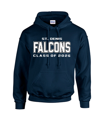 Graduation Hooded Sweatshirt 50% Cotton /50% polyester preshrunk 13.5 oz. Double-lined hood. Drawstring at neckline. Front pouch pocket. Hand positioned Tackle Twill with large format embroidery. No detail spared with over 40,000 stitches. Premium stitch count decoration techniques applied. Special Product Offering for grade 8 graduating class only