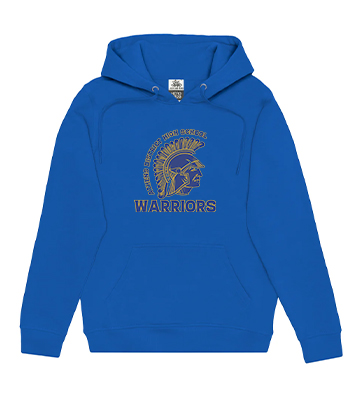 Adult Varsity Hooded Sweatshirt 50% Cotton /50% polyester preshrunk 13.5 oz. Double-lined hood. Drawstring at neckline. Front pouch pocket. Hand positioned Tackle Twill with large format embroidery. No detail spared with over 40,000 stitches. Premium stitch count decoration techniques applied.