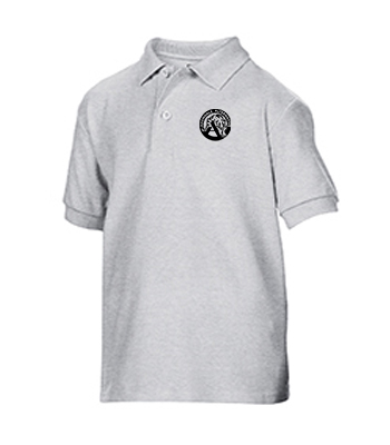 50/50 poly cotton dry blend ring spun cotton. Classic fit. Contoured welt collar and cuffs. Left chest school logo embroidered