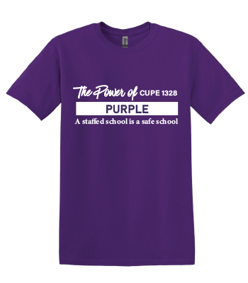 As we head into our next round of collective bargaining, this CUPE 1328 Purple T-Shirt represents the strength, solidarity, and unity of our membership.