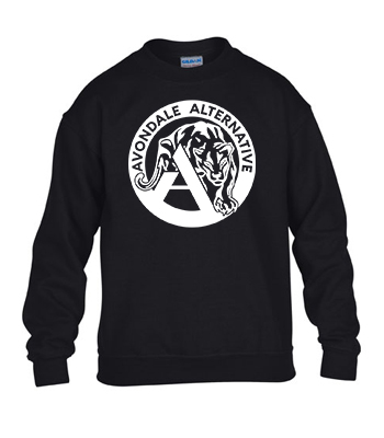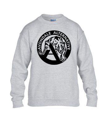 Youth Crewneck sweatshirt 50% Cotton /50% polyester 13.5 oz. Full Front centre screen printed school logo